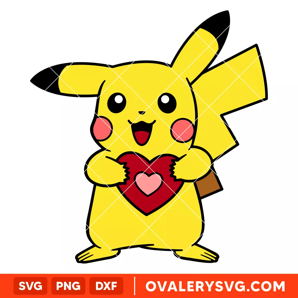 Pikachu Heart SVG, Valentine’s Day SVG, Pokemon SVG, Cricut, Silhouette SVG PNG Cut File